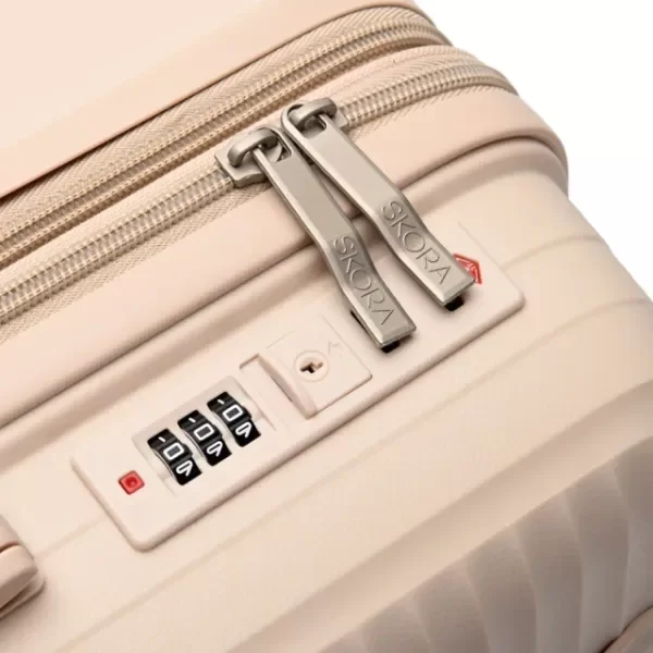 Su estructura rígida de polipropileno garantiza resistencia, mientras que el interior de poliéster estampado con elásticos asegura que tus pertenencias se mantengan organizadas y protegidas. Además, dispone de ganchos laterales, una manija de agarre superior y lateral, y un asa telescópica doble con botón retráctil para un transporte cómodo y adaptable.